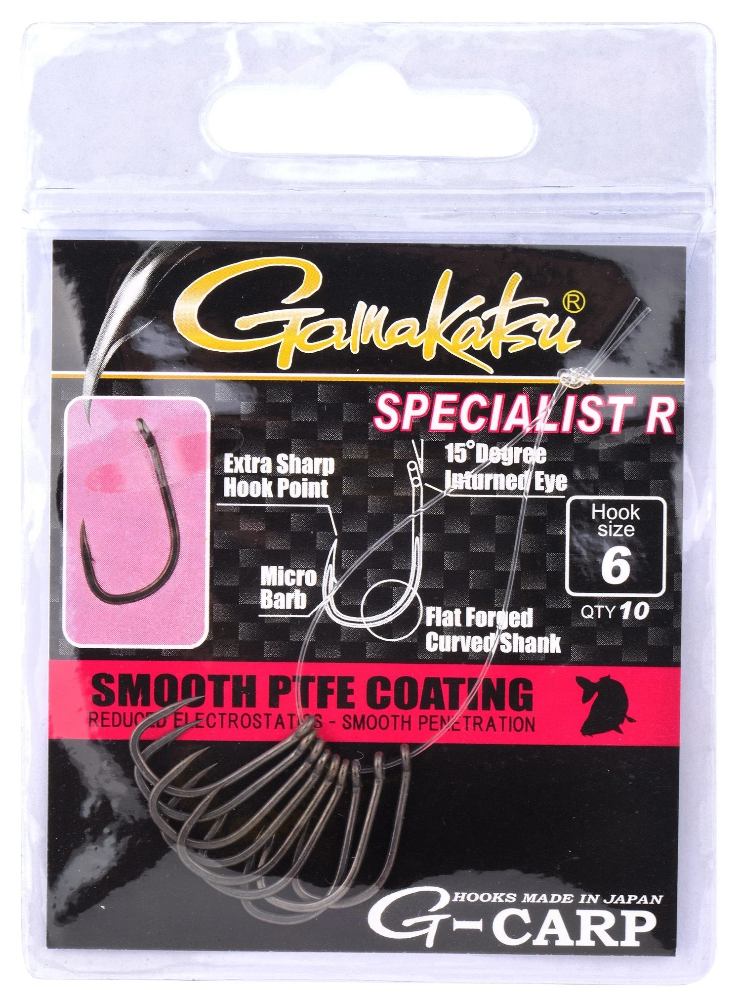 Gamakatsu Specialist R არის მაღალი ხარისხის კარპის თევზაობისთვის განკუთვნილი ნემსკავი, რომელიც გამოირჩევა განსაკუთრებული დიზაინით და გამძლეობით.ეს მოდელი გამოირჩევა მავთულის სითხელით რაც პასიურ თევზზე იდეალურია.ძირითადად გამოიყენება ძირვად სატყუარებზე , არ ბლაგვდება მალე და ინარჩუნებს სიბასრეს.შეკვრაში 10 ცალია